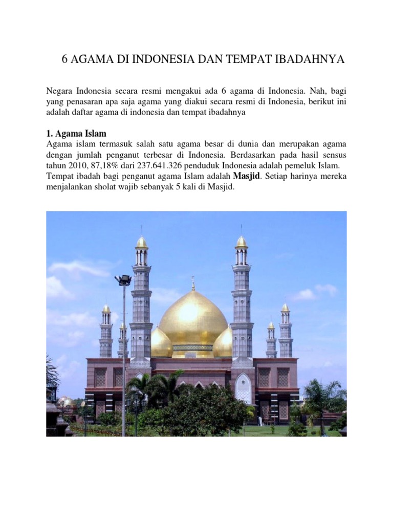 6 Agama Di Indonesia Dan Tempat Ibadahnya2 Docx 6 Agama Di Indonesia Dan Tempat Ibadahnya Negara Indonesia Secara Resmi Mengakui Ada 6 Agama Di Course Hero