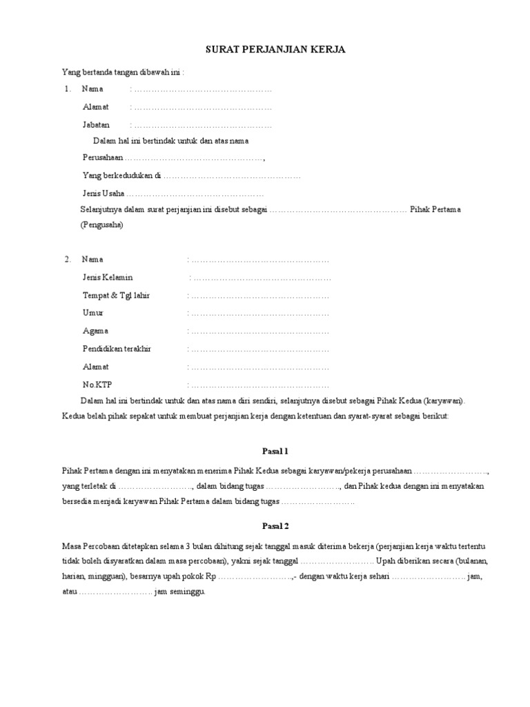 Contoh Surat Perjanjian Kerja Waktu Tertentu Dengan 9 Pasal Didalamnya Format Surat
