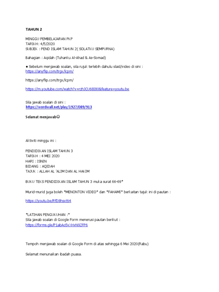 Latihan Pendidikan Islam Tahun 3 Canang 23 Mac 27 Mac 2020 Pdf Pages 1 3 Text Version Anyflip
