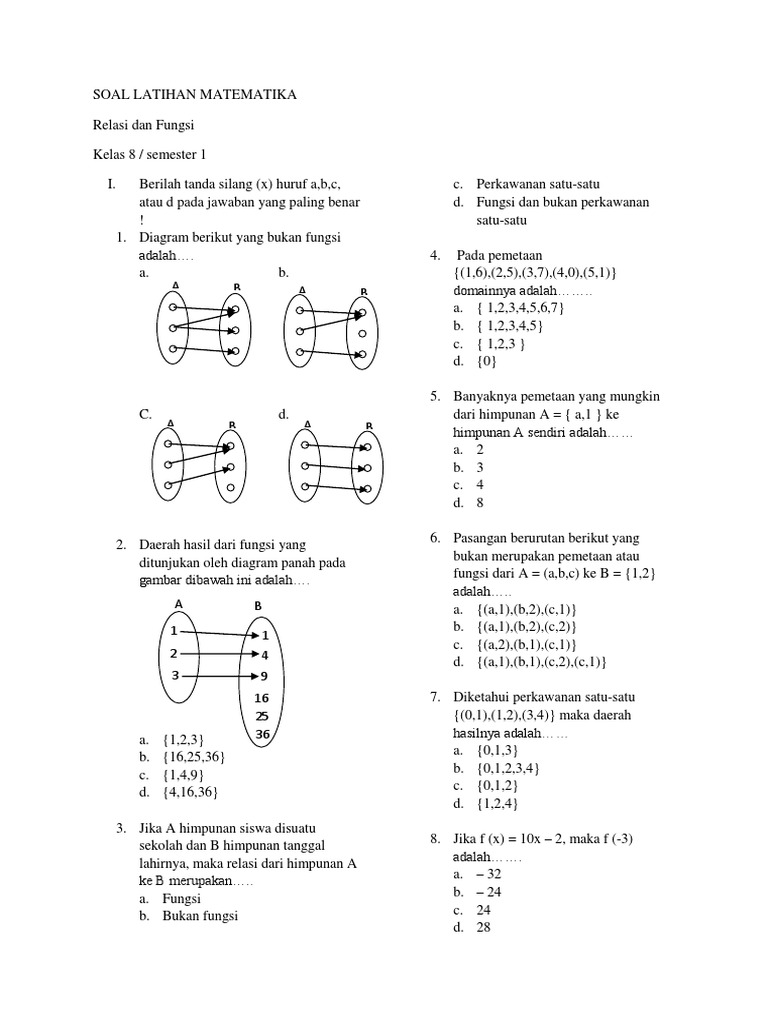 Maretong Soal Dan Pembahasan Relasi Dan Fungsi Kelas 8