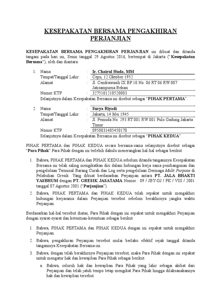 Contoh Surat Pemutusan Perjanjian Kerjasama Antar Perusahaan Kumpulan Surat Penting