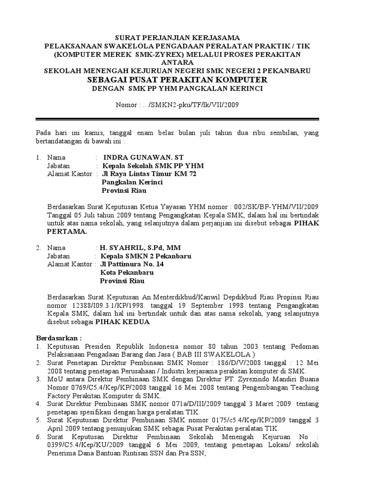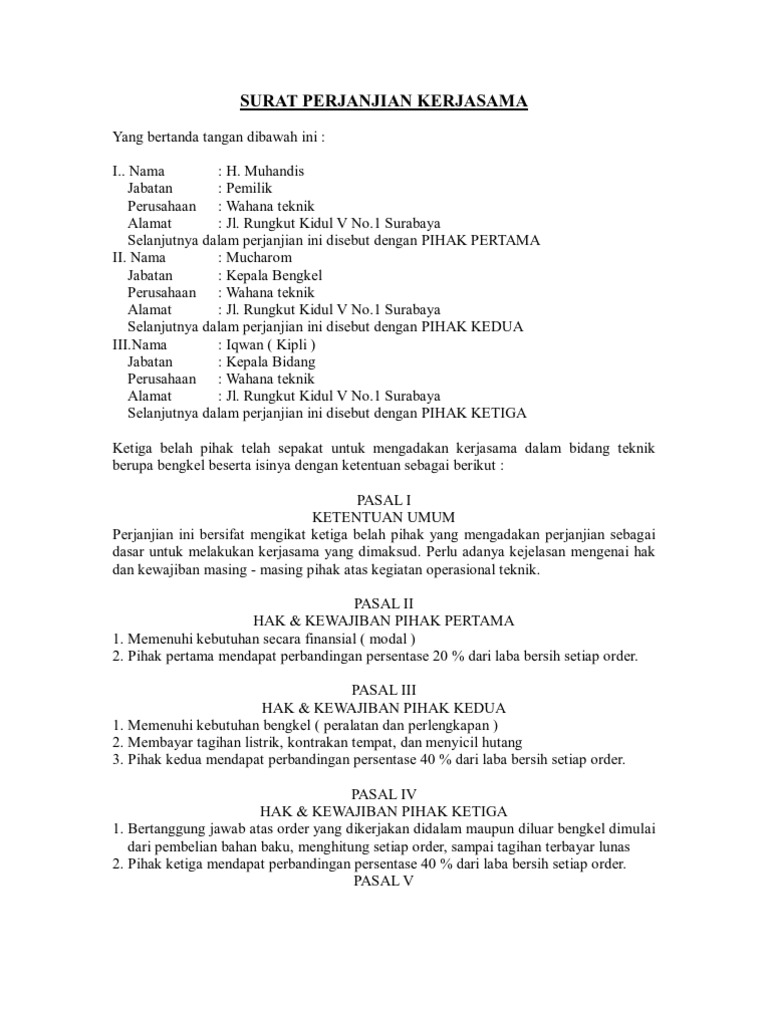 Doc Surat Perjanjian Kerjasama Budidaya Jamur Tiram Pleurotus Spp Nur Eka Academia Edu