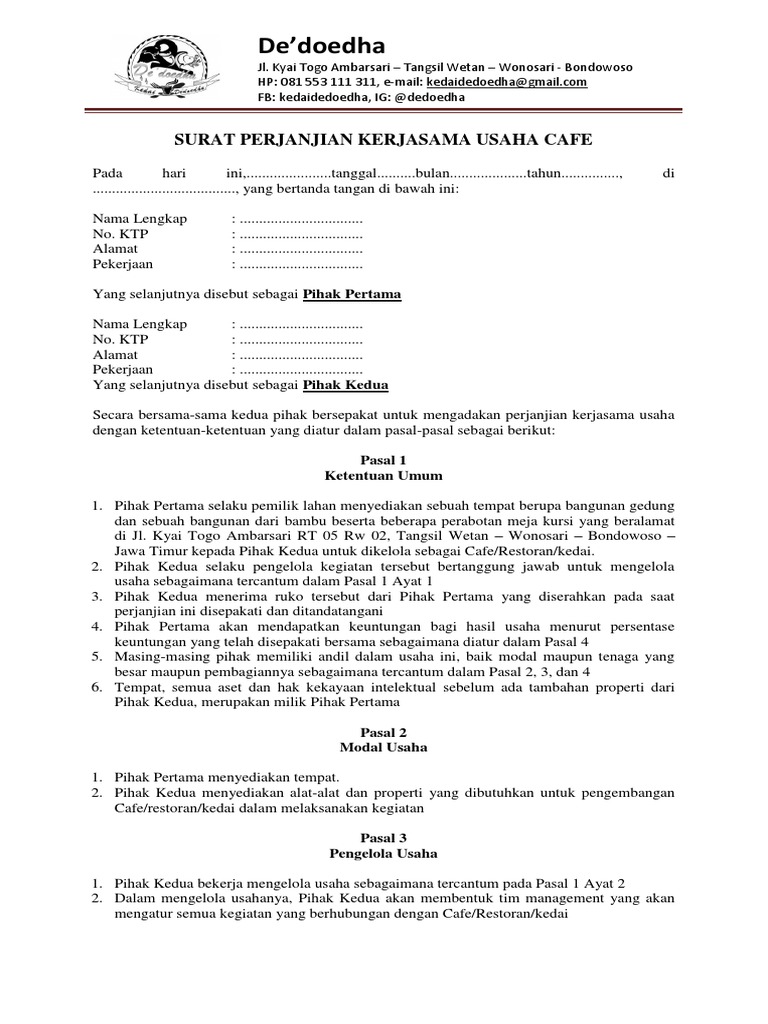 Perjanjiankerjasama Surat Perjanjian Kerjasama Driver Contoh Surat Perjanjian Kerja Sama Usaha