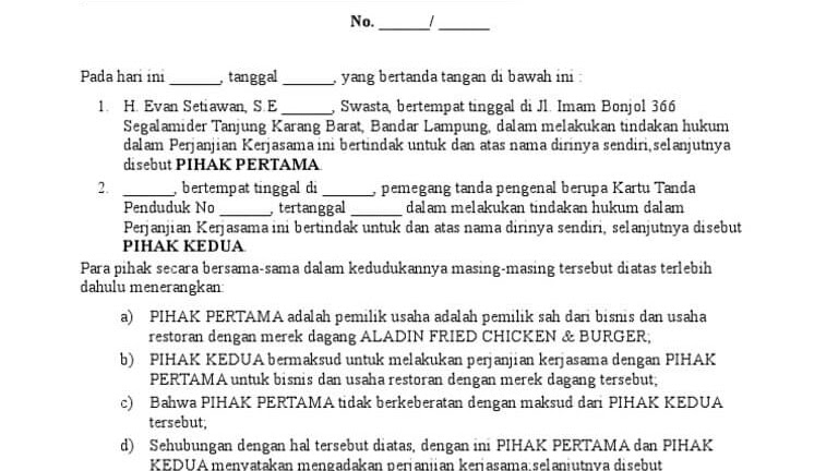 Contoh Surat Perjanjian Kerjasama Bagi Hasil Restoran Backup Gambar