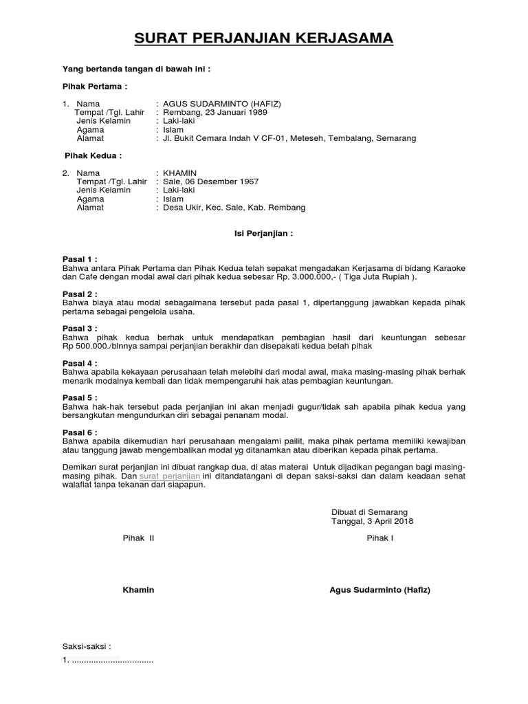 Contoh Surat Perjanjian Kerjasama Yang Baik Dan Benar Akseleran Blog