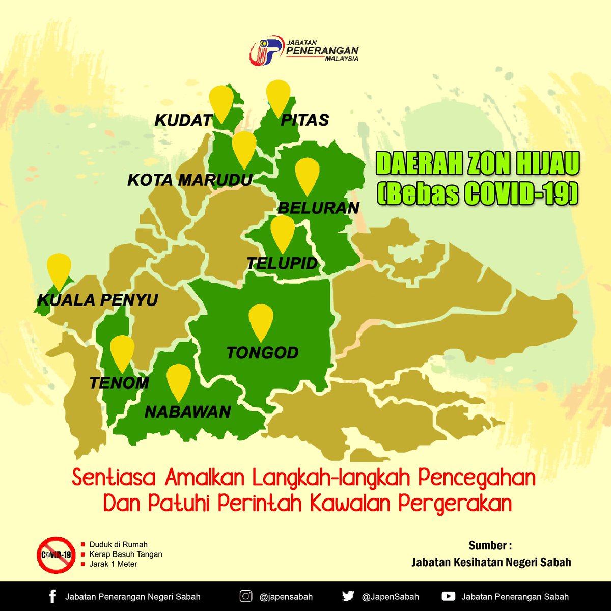 Kkmalaysia On Twitter Dua Daerah Di Sabah Direkodkan Sebagai Zon Kuning Hari Ini Lahad Datu Dan Kinabatangan Hanya 6 Negeri Dan Wilayah Persekutuan Kekal Zon Hijau Hari Ini Https T Co Raolzbzb2m
