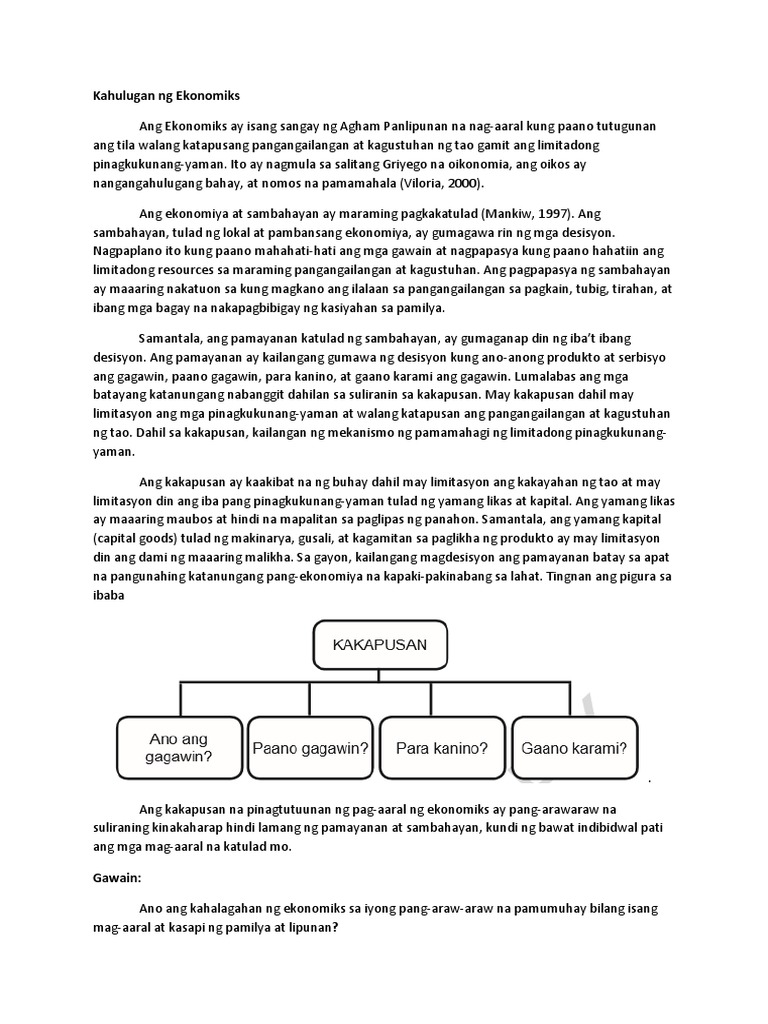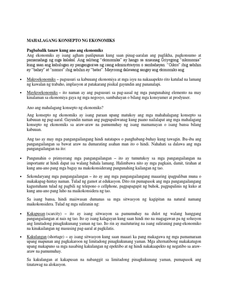 M Ekonomics Docx Aralin 1 Kahulugan At Kahalagahan Ng Ekonomiks Ang Ekonomiks Ay Isang Pag Aaral Kung Paano Gagamitin Ang Mga Limitadong Pinagkukunang Course Hero