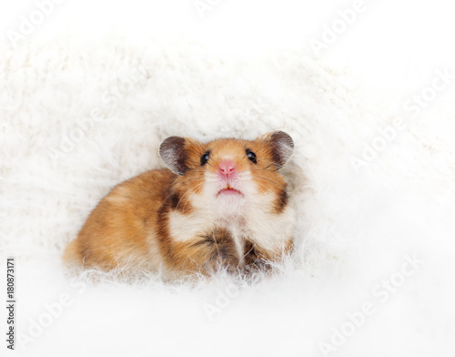 Hamster White Isolated Background Hamsters Domestic Small Cute Animal Rodent Pet Funny Little Syrian Closeup Mouse Studio Mammal Fur Fluffy Adorable Brown Eye Nose Pets Curiou Buy This Stock Photo And