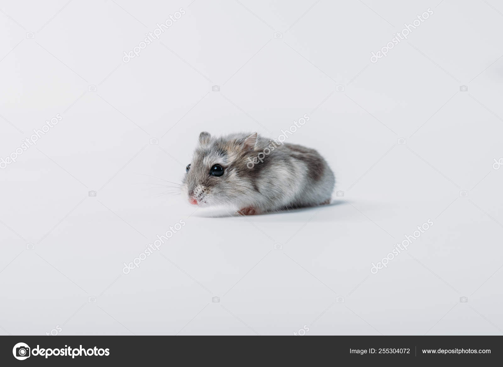 Funny Fluffy Hamster Looking At Camera On Grey Background With Copy Space Stock Photo Alamy