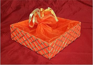 Line N Curves Traditional Gift Hamper Basket With Top Net Fancy Gift Packaging Diwali Hampers Color Orange Size 10 X 10 X 4 Inches Amazon In Home Kitchen