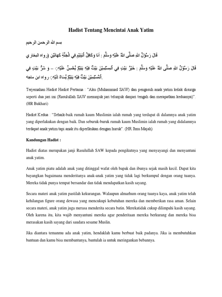 Web Viewmenerjemahkan Hadis Tentang Menyayangi Anak Yatim Hadits Menyayangi Anak Yatim V I Pg 8 3 Menghafalkan Surat Surat Pendek Secara Benar Dan Fasih Docx Document