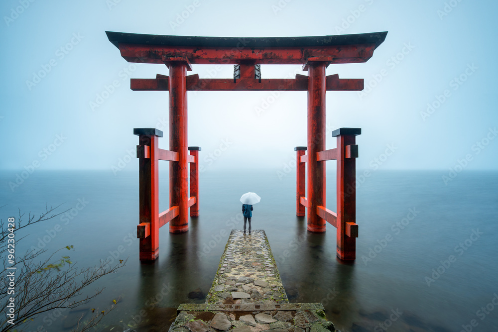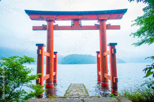 Mount Fuji And A Big Red Torii Gate To The Hakone Shrine On Stock Photo Picture And Royalty Free Image Image 116130663