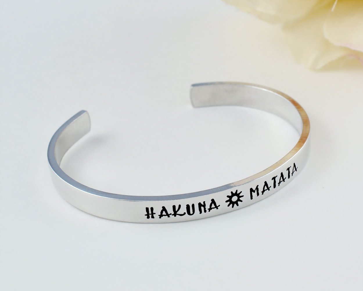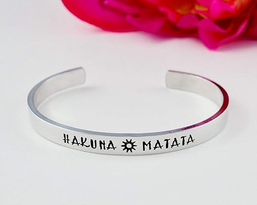 Jvvsci Hakuna Matata Cuff Bracelet Personalized Inspirational Gift Swahili Phrase Means No Worries Sun Symbol Jewelry Amazon Com Au Fashion