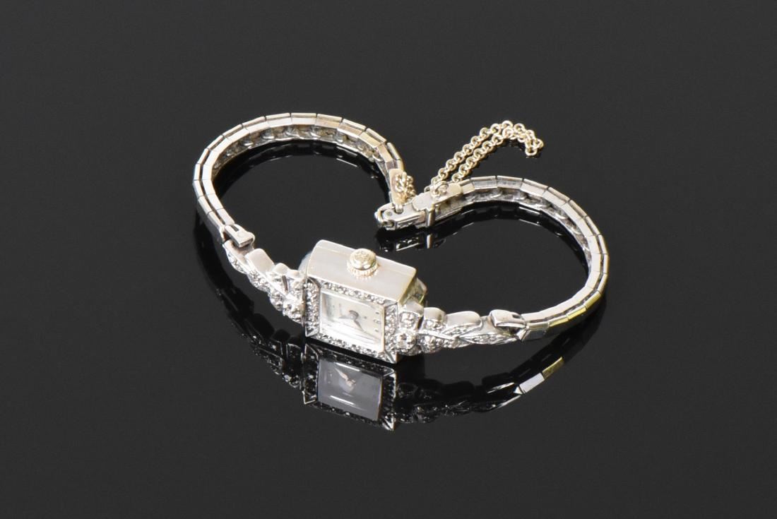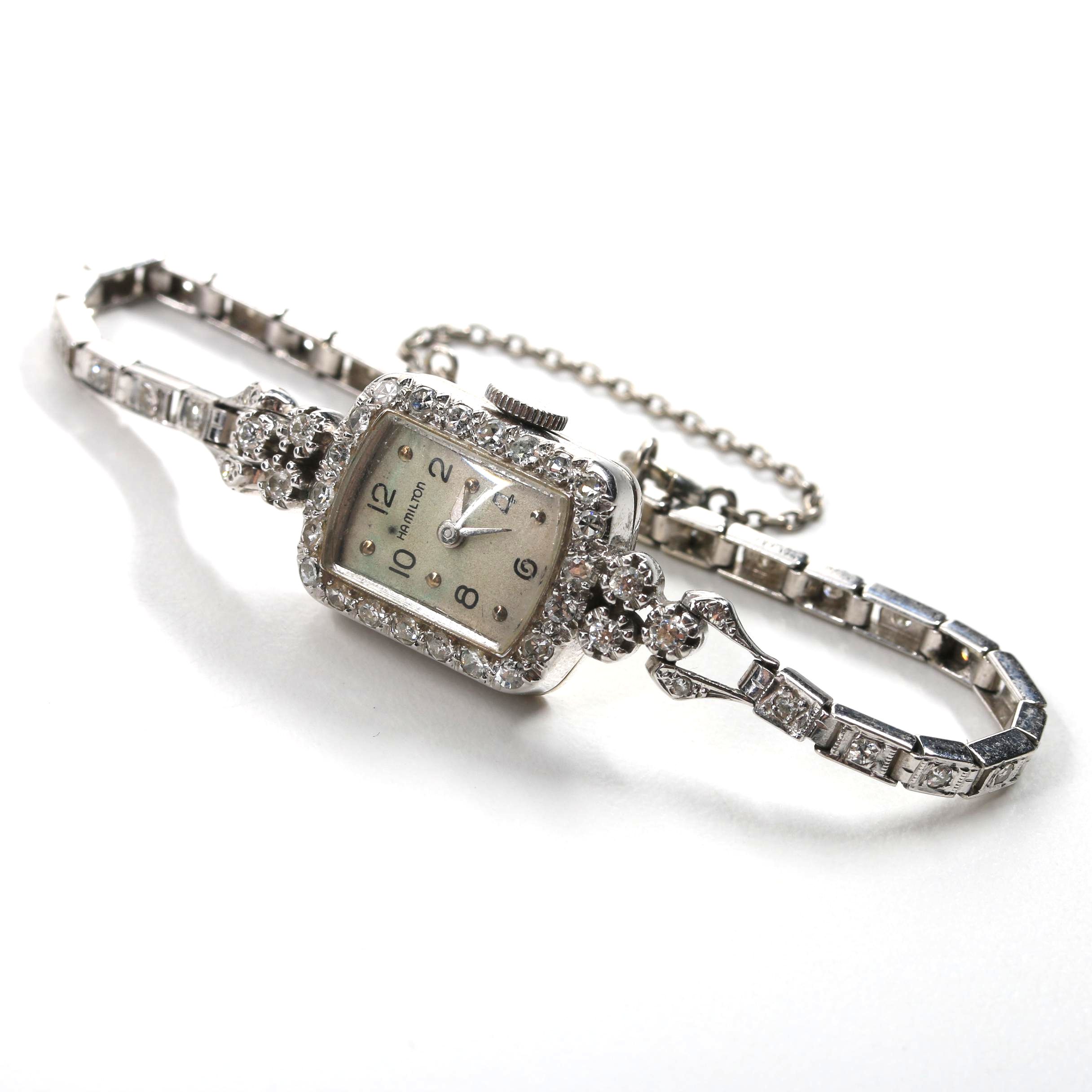 Hamilton 14k White Gold 22 30 Grams Cream Dial Vintage Watch On Diamond Bracelet With Safety Chain Lock Property Room