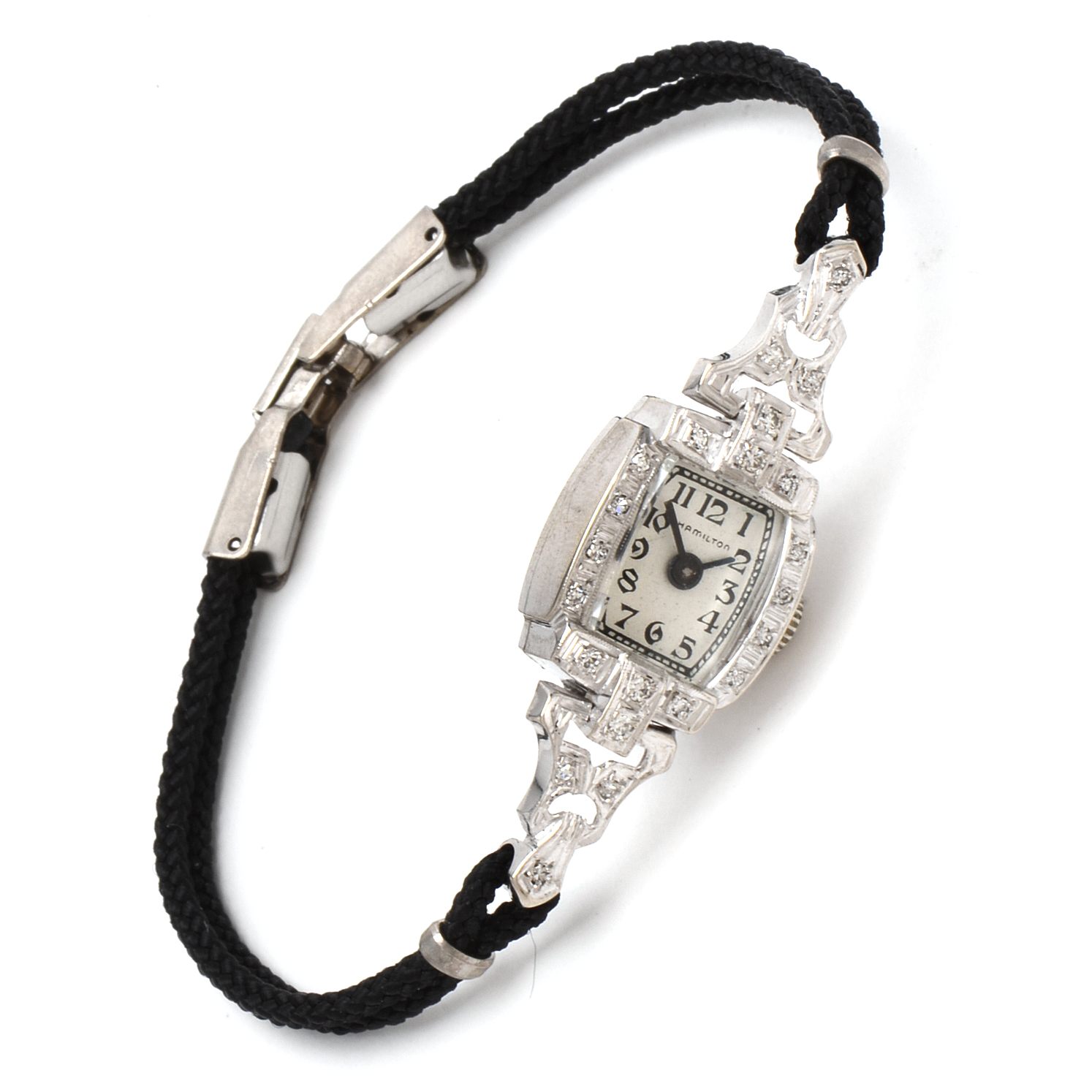 1947 Vintage Hamilton Ladies 14k White Gold Diamonds Watch Second Time Around Watch Company