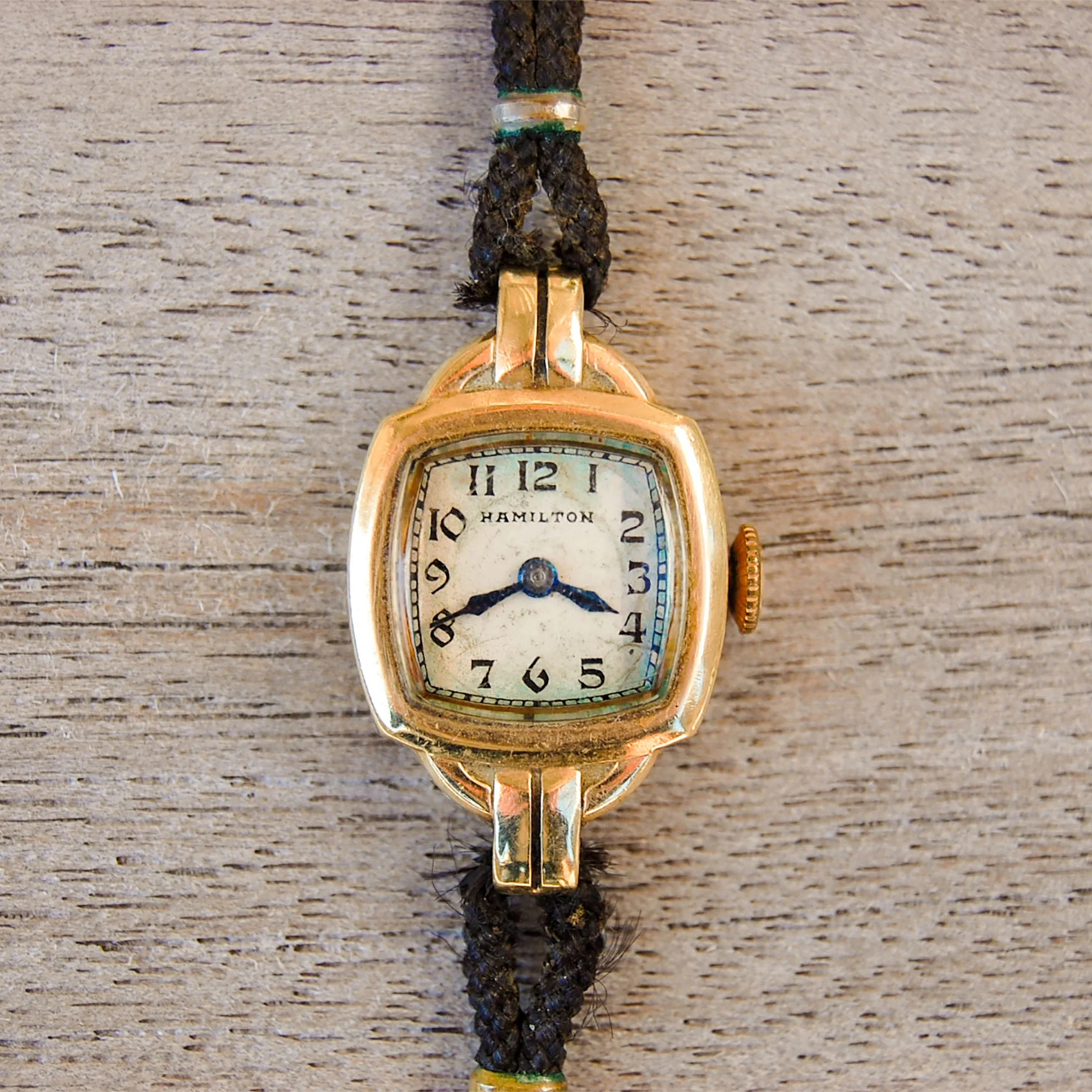 A144 Vintage Original Hamilton 14k Gold Mechanical Hand Winding Wrist Watch Timekeepers Olive