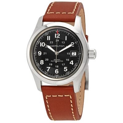 Hamilton H70455733 Men S Khaki Field Automatic Date Leather Strap Watch Black At John Lewis Partners