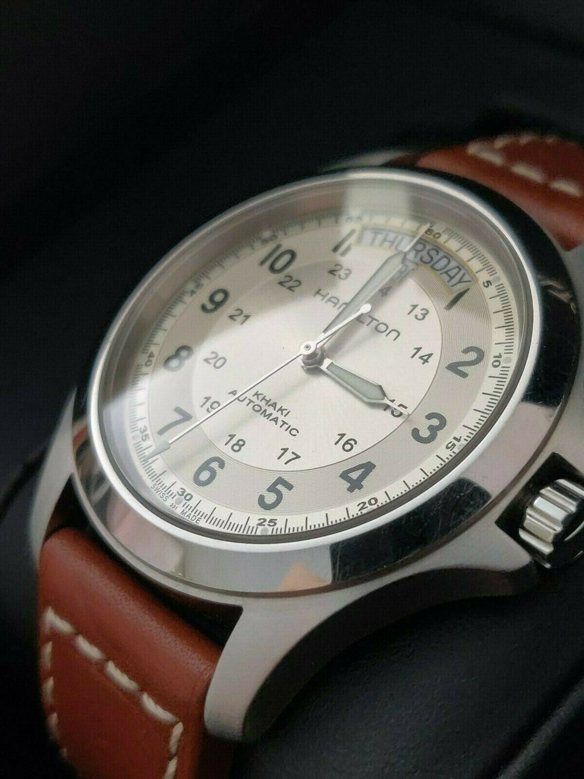 Bnib Hamilton Khaki King Automatic 40mm H64455533 Brown Leather Strap Mens Watch Men S Fashion Watches On Carousell