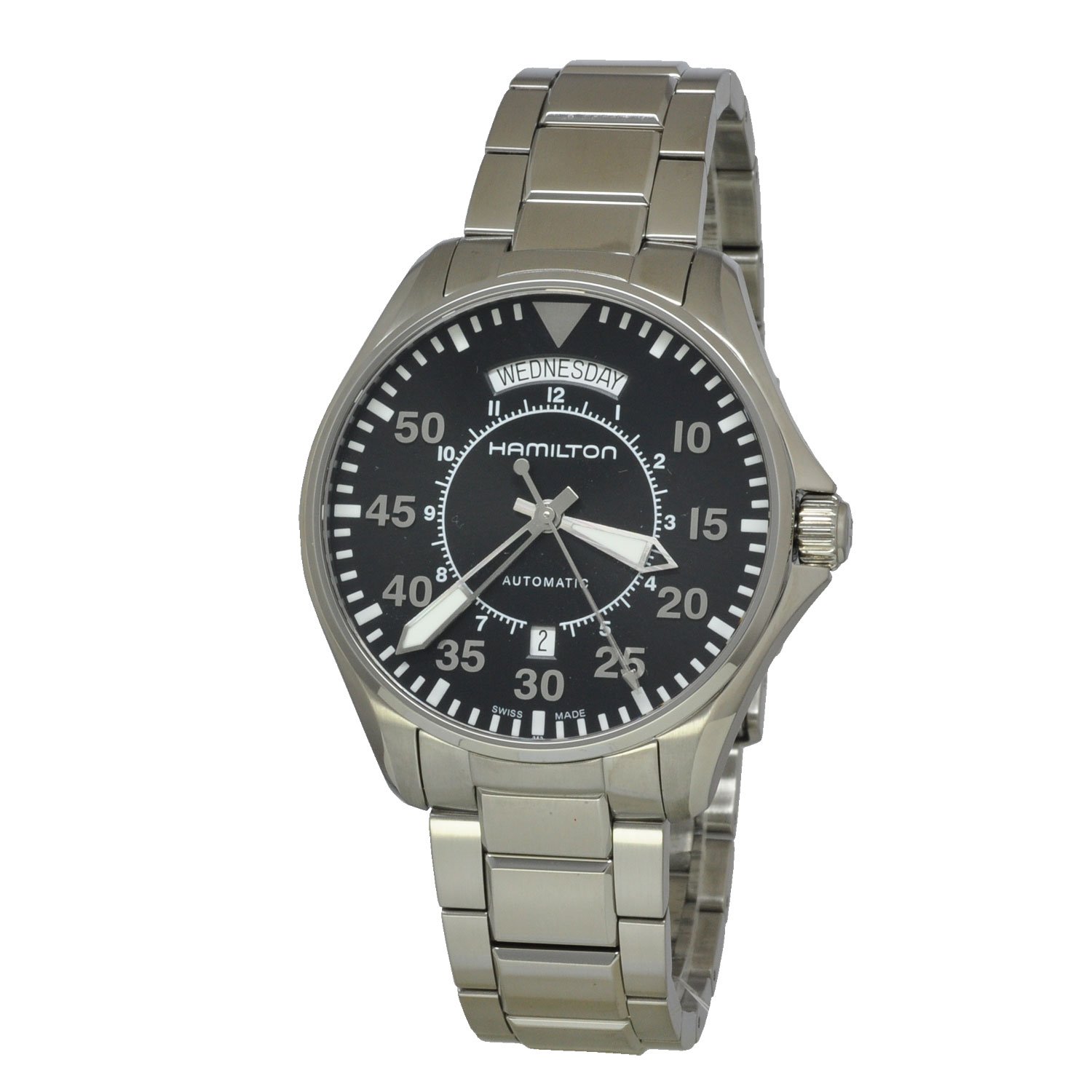Hamilton Khaki Pilot Day Date Auto Black Dial Brown Leather H64605531 First Class Watches
