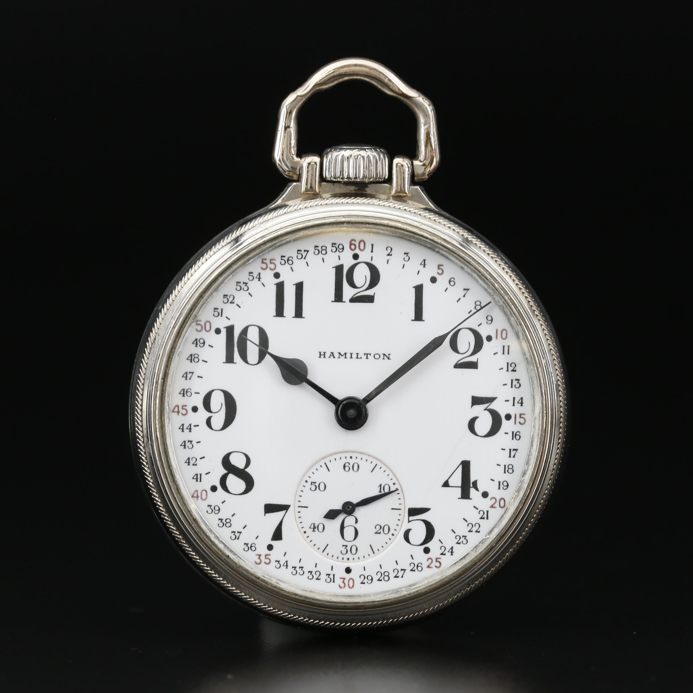 Rare Hamilton 14k Wh Gold Filled Pocket Watch With Secometer Rotating Seconds