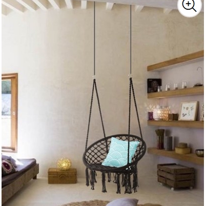 Patio Watcher Hammock Chair Macrame Swing With Cushion And Hanging Hardware Kits Handmade Knitted Mesh Rope Swing Chair For Indoor Outdoor Home Bedroom Patio Yard Deck Garden Black Amazon Sg Home