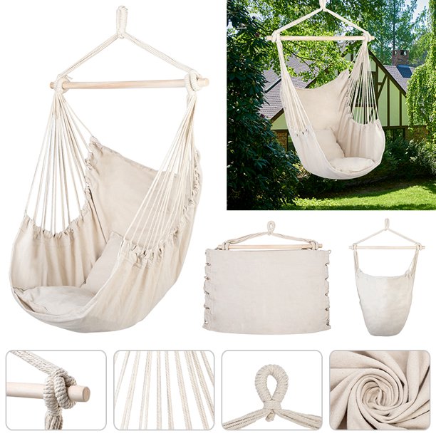 Wbhome Hammock Chair Swing With Hanging Hardware Kit Beige Cotton Canvas Include Carry Bag Two Seat Cushions For Bedroom Indoor Outdoor Max Weight 330 Lbs Amazon Ca Home Kitchen