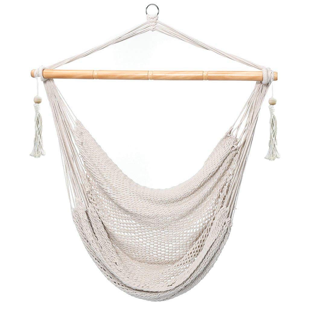 Amazon Com Caromy Hammock Chair Macrame Swing Hanging Lounge Mesh Chair Durable Cotton Rope Swing For Bedroom Patio Garden Deck Yard Max Capacity 265 Lbs Beige Kitchen Dining