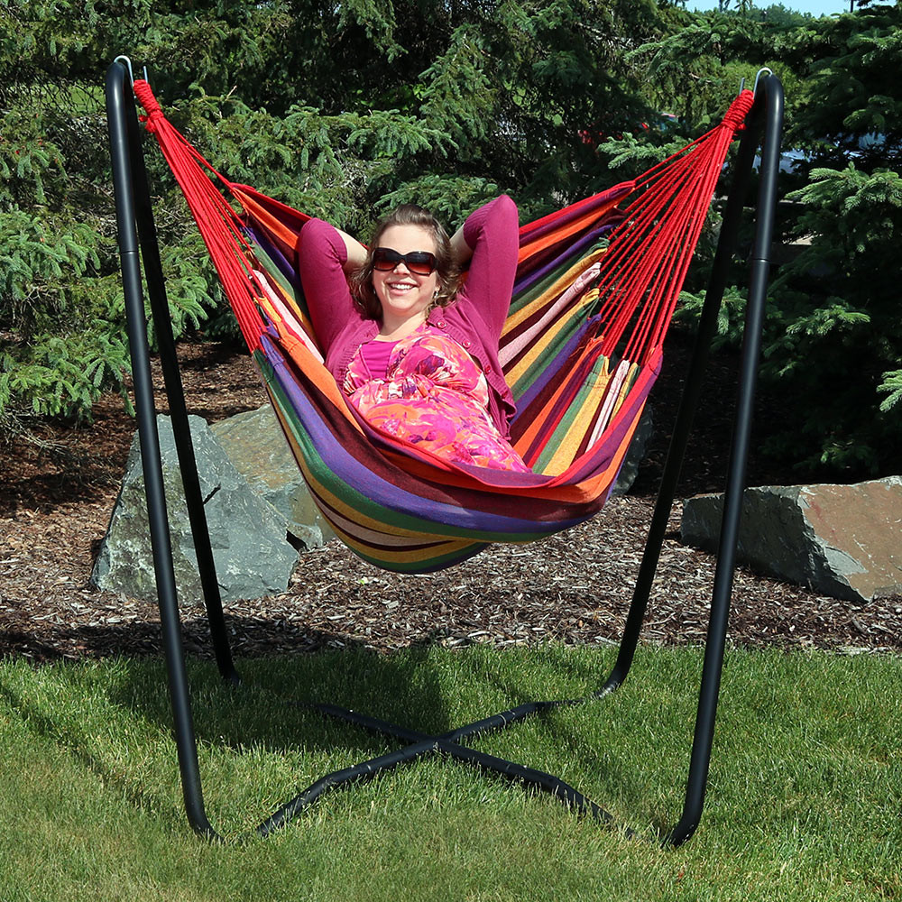Sunnydaze 2 Point Hanging Hammock Chair Swing And A Stand Set For Outdoor Use Outdoor Furniture
