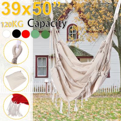 Hammock Cotton Swing Camping Hanging Rope New Chair Wooden Beige White Outdoor B0190dcv2c