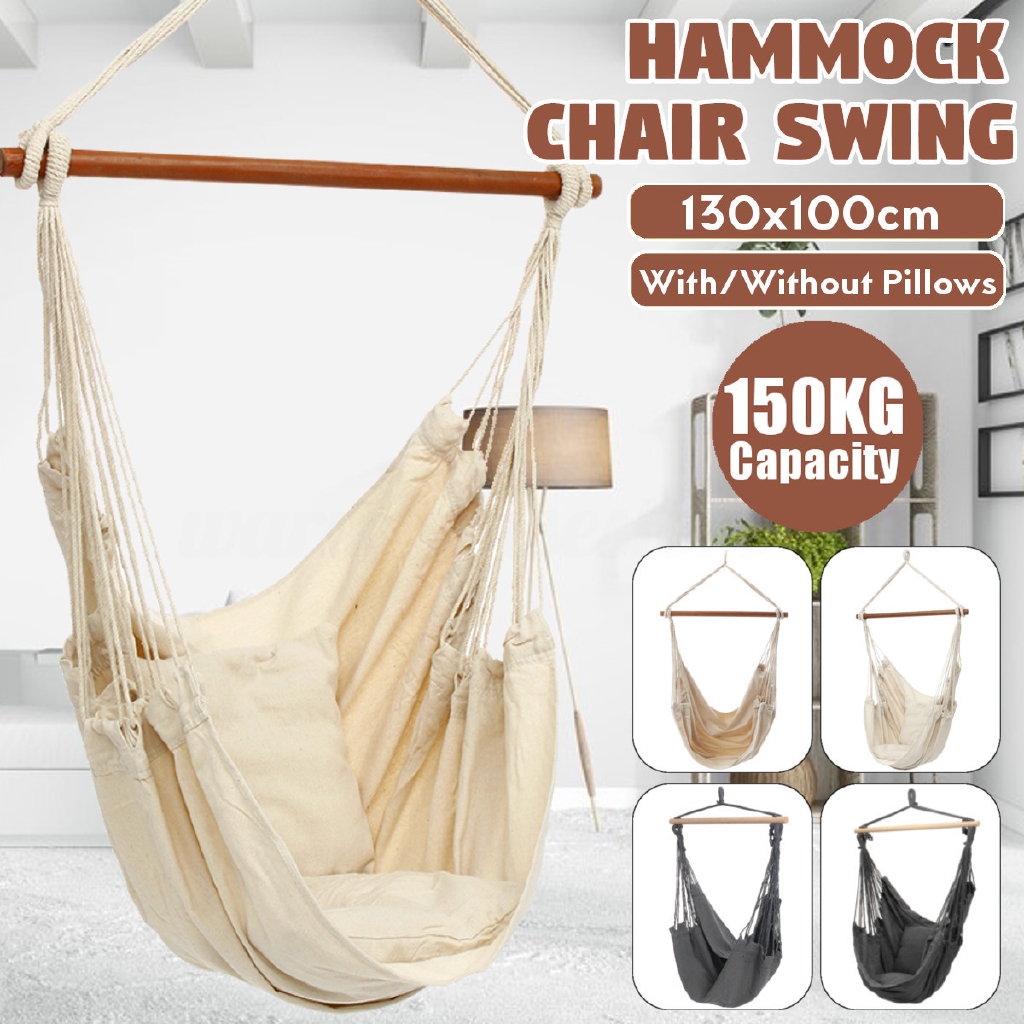 Ready Stock Hammock Chair Hanging Rope Chair Swing Chair Seat With 2 Pillows For Garden Indoor Outdoor Fashionable Hammock Swings D Shopee Singapore