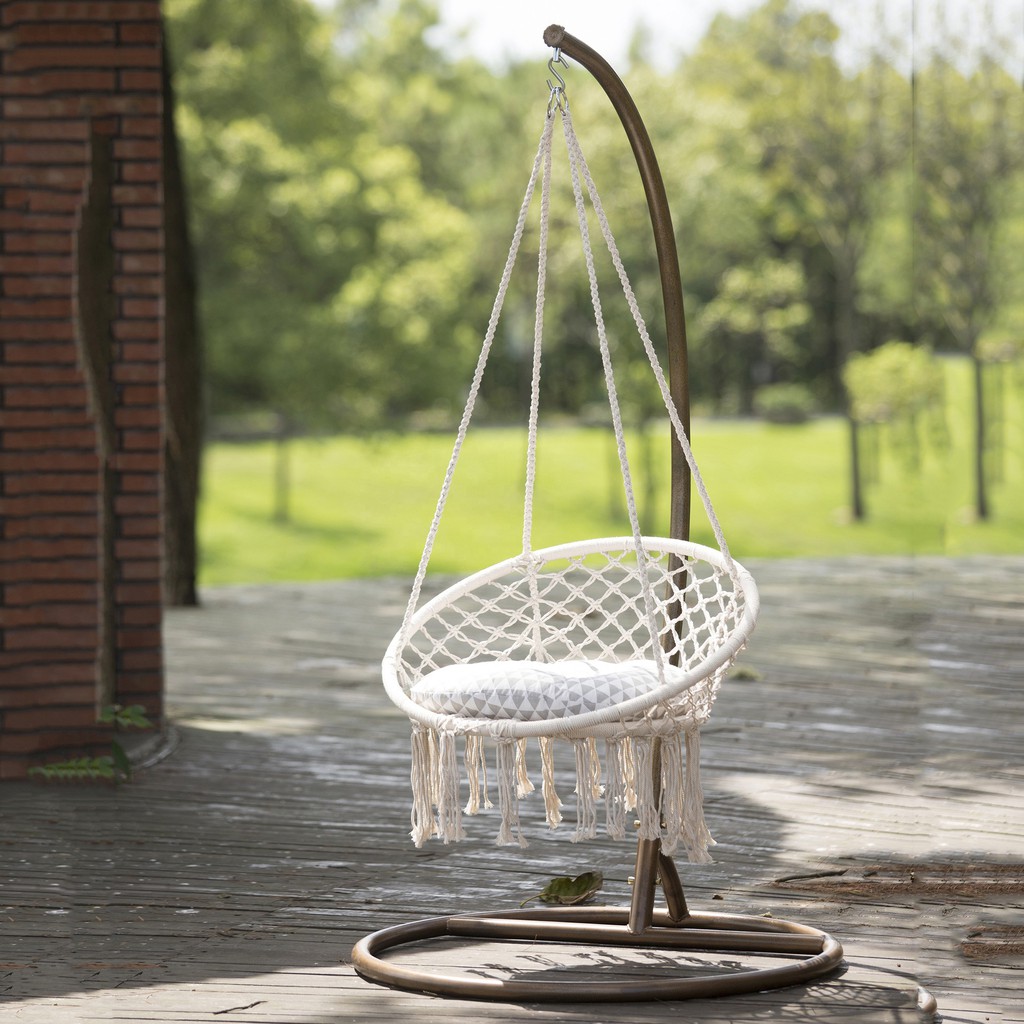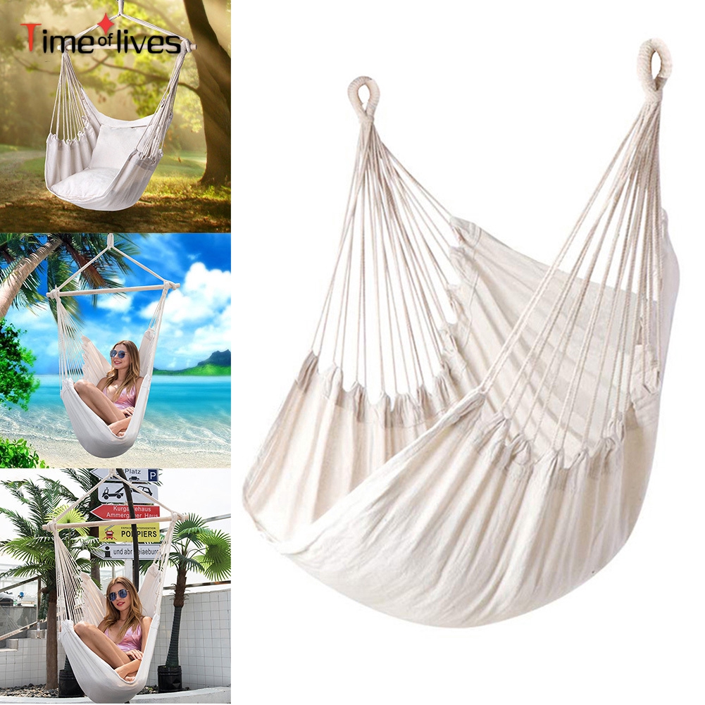 Safe Beige Hanging Hammock Chair Swing Rope Outdoor Indoor Bar Garden Seat Shopee Singapore