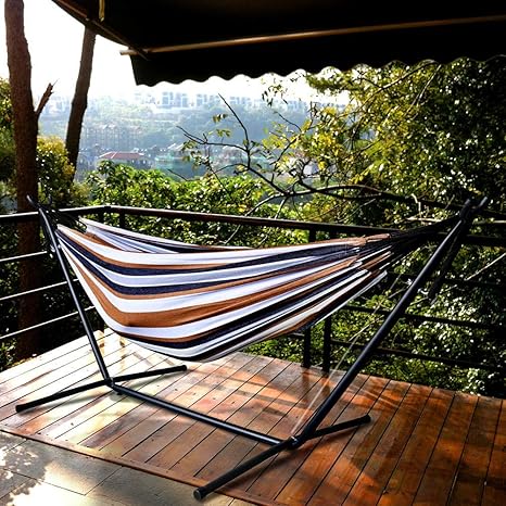 Pikakos Double Hammock With Stand For 2 Persons Up To 450 Pounds Outdoor Indoor Patio And Lawn Portable Hammock Swing Bed For Kids Adults B Amazon In Garden Outdoors