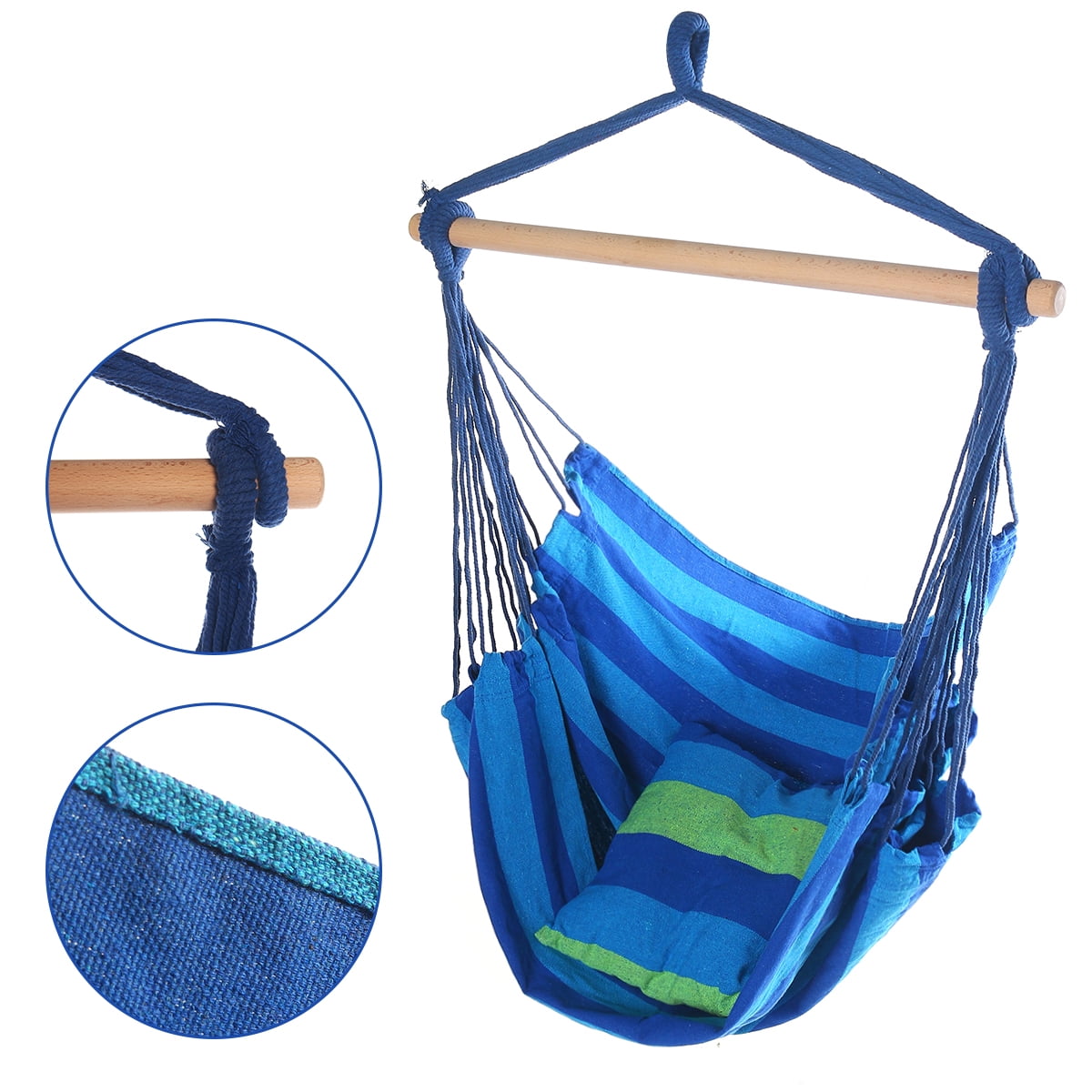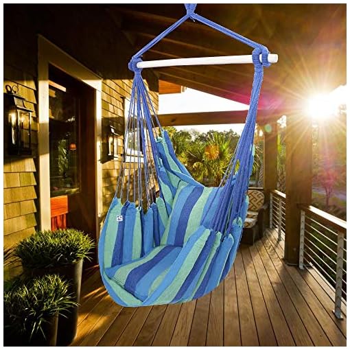 Oncloud Hanging Rope Hammock Chair Swing Seat For Yard Bedroom Patio Porch Indoor Outdoor 2 Seat Cushions Included Blue Beachfront Decor
