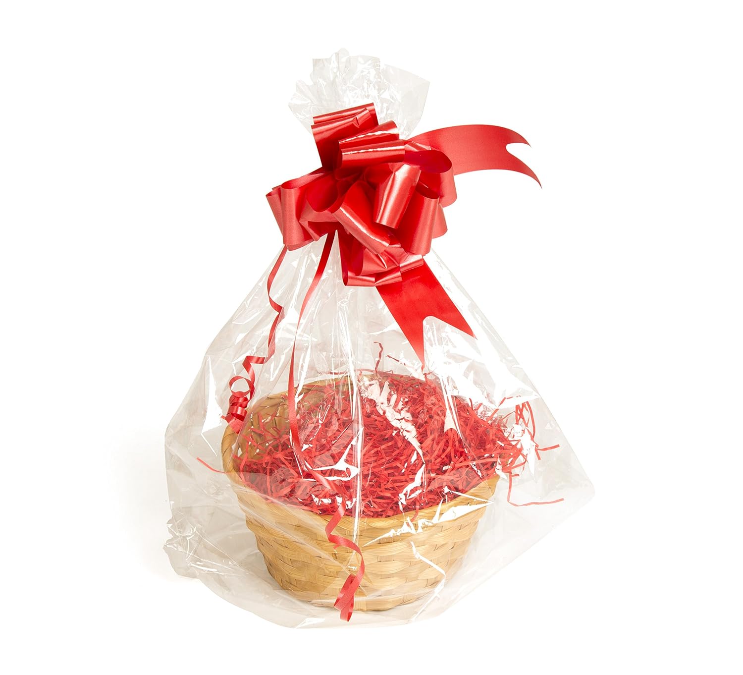 Your Gift Basket Brown Wooden Tray Diy Hamper Kit With Red Shred Red Bow And Clear Gift Wrap Basket Making Home Kitchen