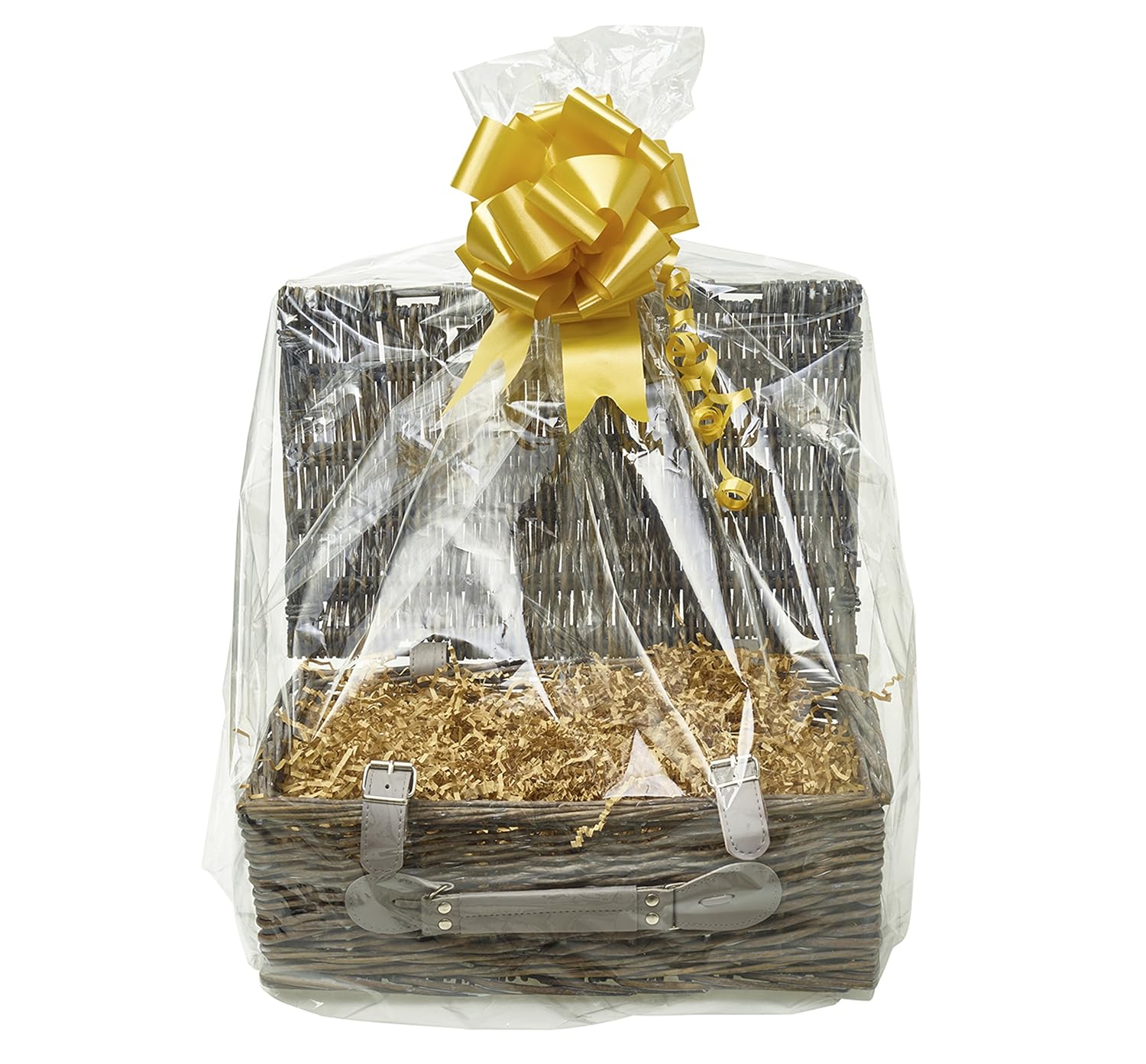 Brown Willow Hamper Basket Diy Hamper Kit With Green Shred Green Bow And Clear Gift Wrap 340 Mm Length X 210 Mm Wide X 110 Mm High Your Gift Basket Arts