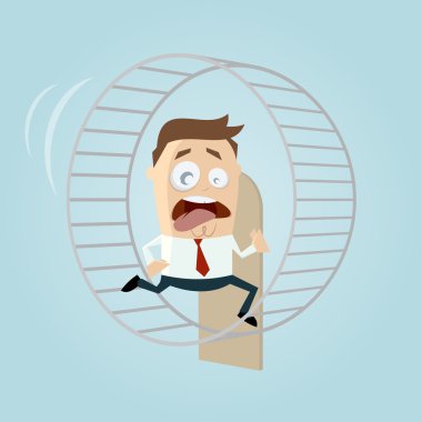 Businessman Running In Hamster Wheel Cartoon Businessman Running In Hamster Wheel Rat Race Concept And Workplace Anxiety