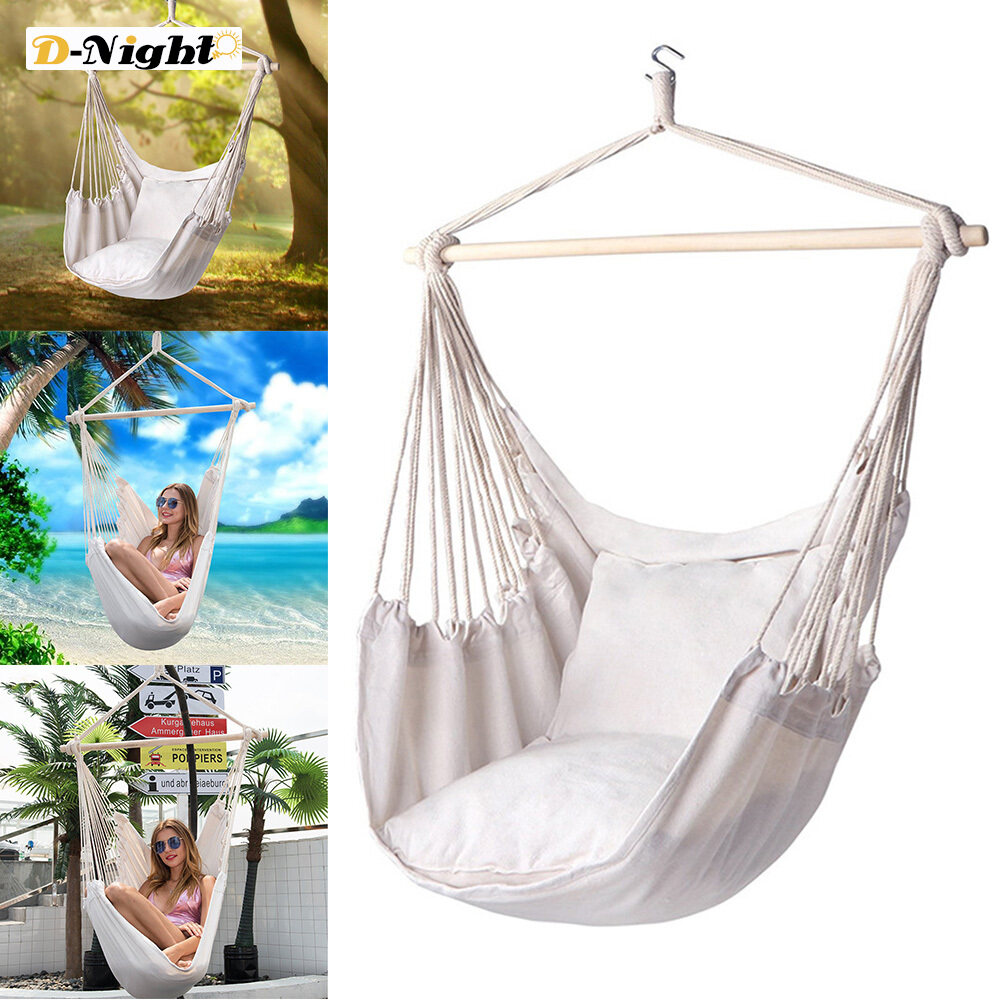 Alloet Beige Cotton Woven Hanging Hammock Chair Swing Rope Outdoor Indoor Home Bar Garden Seat Hang Chair For Kids Child Adult Hammocks Aliexpress