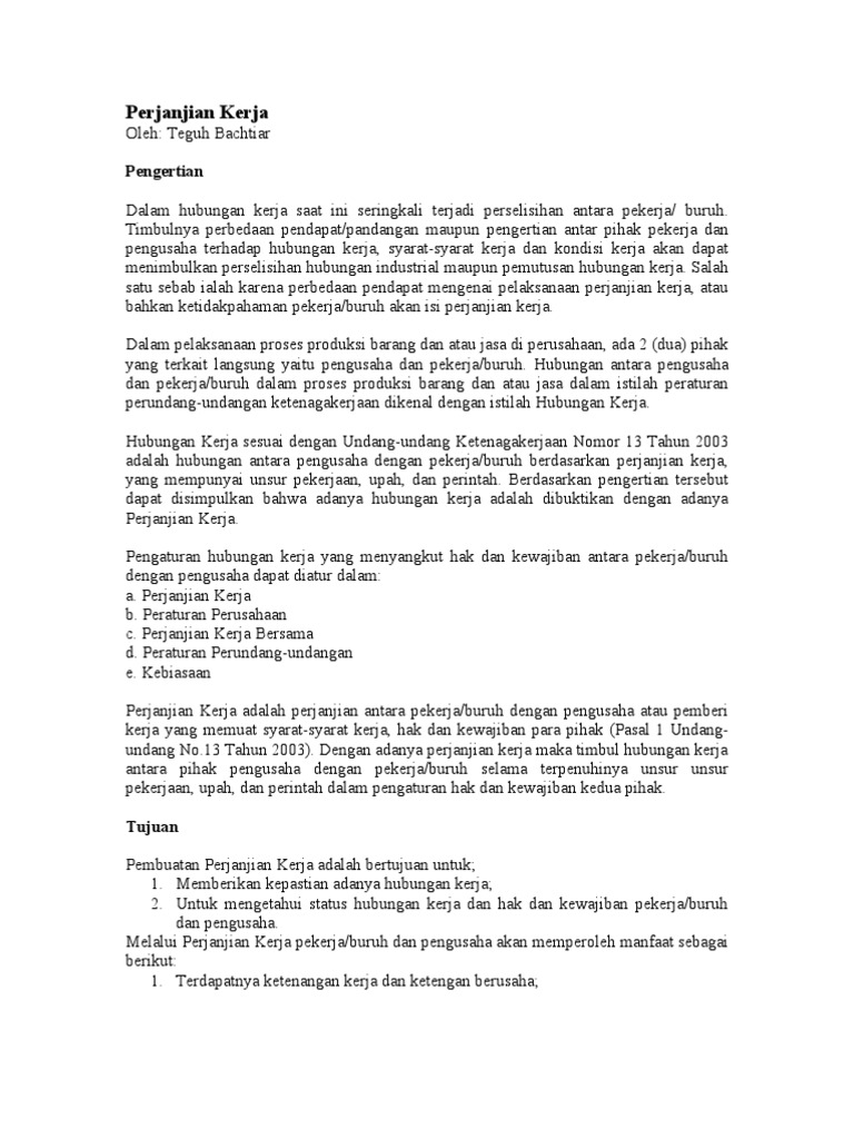 Contoh Surat Perjanjian Kerja Karyawan Lengkap Karyaone