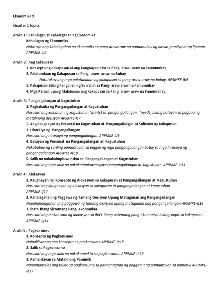 Sample Learning Plan In Araling Panlipun 1 Pdf Asignatura Araling Panlipunan 9 Ekonomiks Pamantayang Pangnilalaman Markahan Una Ang Mga Mag Aaral Ay Course Hero