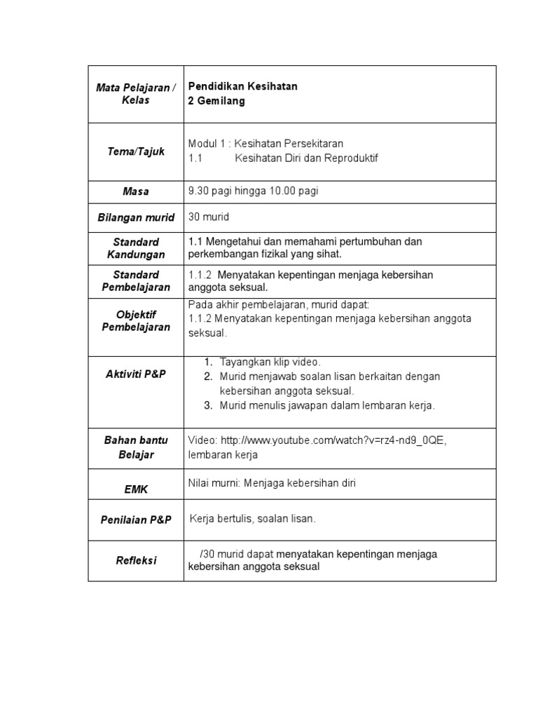 Pdf Rancangan Pelajaran Tahunan Pendidikan Jasmani Dan Pendidikan Kesihatan Tahun 6 Nita Hassan Academia Edu