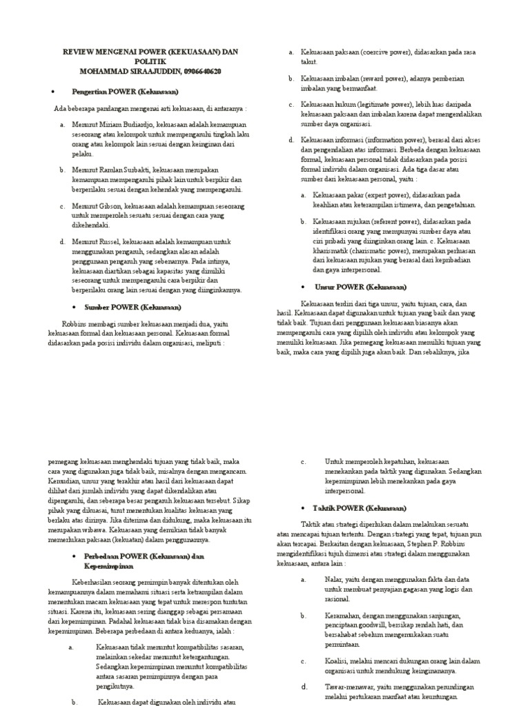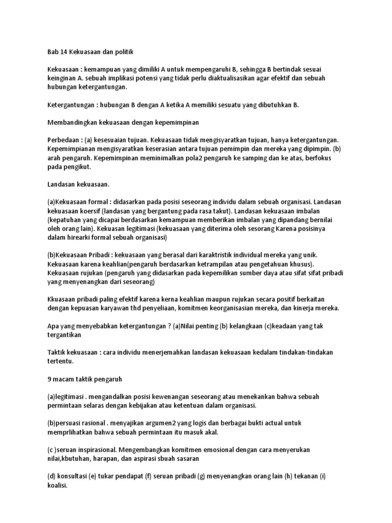 Doc Teori Organisasi Kekuasaan Dan Politik Organisasi Fridiyanto Yanto Academia Edu