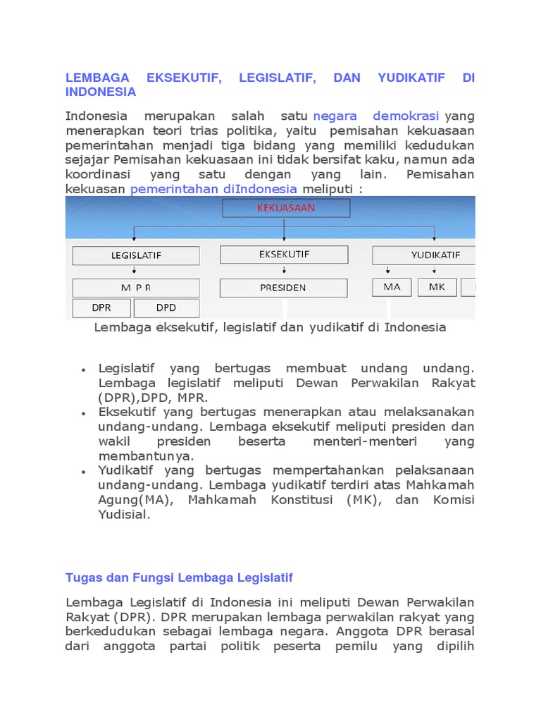 Tugas Dan Wewenang Lembaga Eksekutif Legislatif Dan Yudikatif