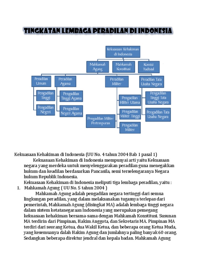 Kekuasaan Kehakiman Di Indonesia Dijalankan Oleh Empat Lingkungan Peradilan Yang Masing