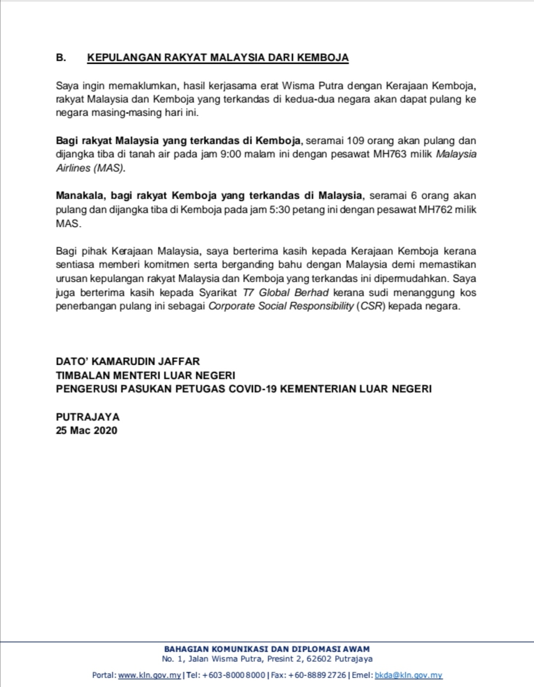 Wisma Putra On Twitter Siaran Akhbar Perkembangan Terkini Berkaitan Rakyat Malaysia Yang Terkandas Di Luar Negara Berikutan Penularan Pandemik Covid 19 Hishammuddinh2o Ikramshahrul Amran Zin Nadziraho H2ocomms Jpmgov Mknjpm Mynadma