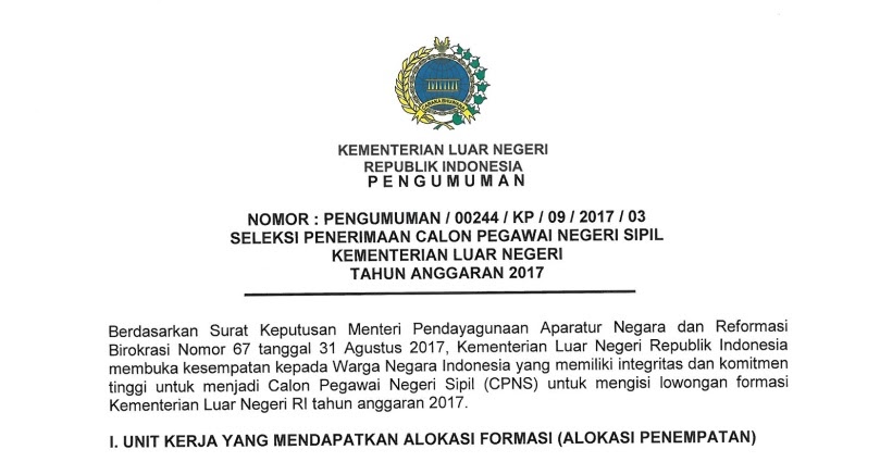 Penerimaan Calon Pegawai Setempat Periode Ii Ta 2020 Kementerian Luar Negeri Ri Update Lowongan Kerja Bumn Cpns Terbaru Bulan Oktober 2020
