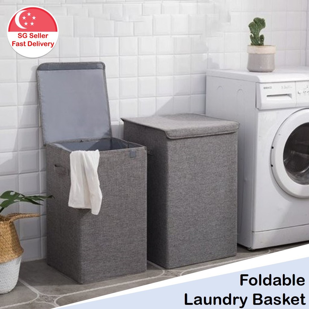Sawake Laundry Basket With Lid Large Linen Collapsible Laundry Hamper With Handles Waterproof Lining Detachable Brackets Dirty Clothes Hamper For Bathroom Bedroom Dorm Nursery Organization Grey Amazon Sg Home