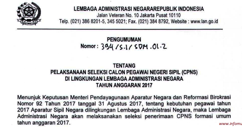 Formasi Cpns Lembaga Administrasi Negara Lan 2017 Informasi Untukmu Guru