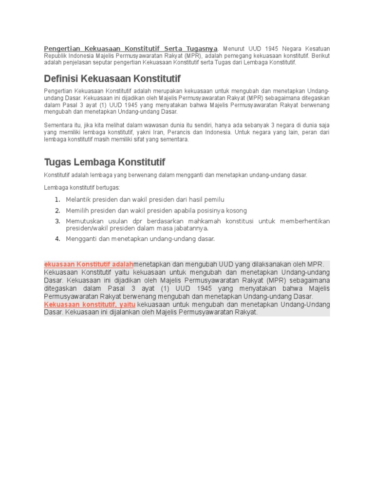 Tugas Dan Wewenang Lembaga Negara Berdasarkan Uud 1945 Pustakapengetahuan Com