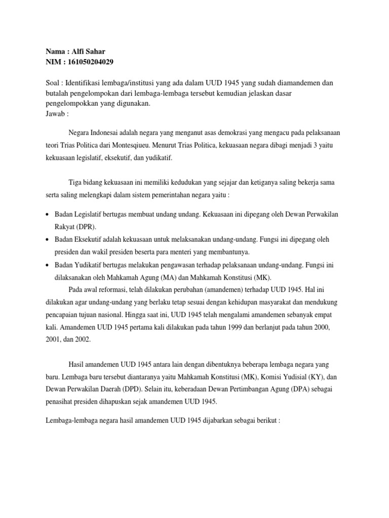 Fungsi Lembaga Negara Sebelum Dan Sesudah Trias Politika Tersebut Sekarang Ini Sudah Tidak Relevan Lagi Pdf Document