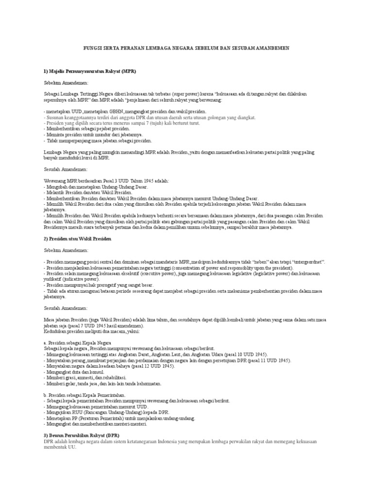 Struktur Kelembagaan Negara Sebelum Dan Sesudah Amandemen The Institutional Structure Of Indonesia Berbagaireviews Com